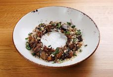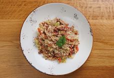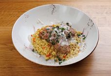 Медальоны из свинины с луковым конфи и пряным булгуром