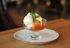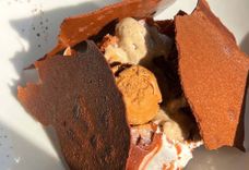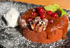 Шоколадный бисквит с английским соусом и ржаным мороженым