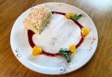 Фирменный яблочный пирог с соленой карамелью и сметанным муссом