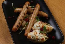 Колбаски с картофельным запеченым салатом и тушенной капустой