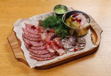 Мясные копчености с домашними соленьями
